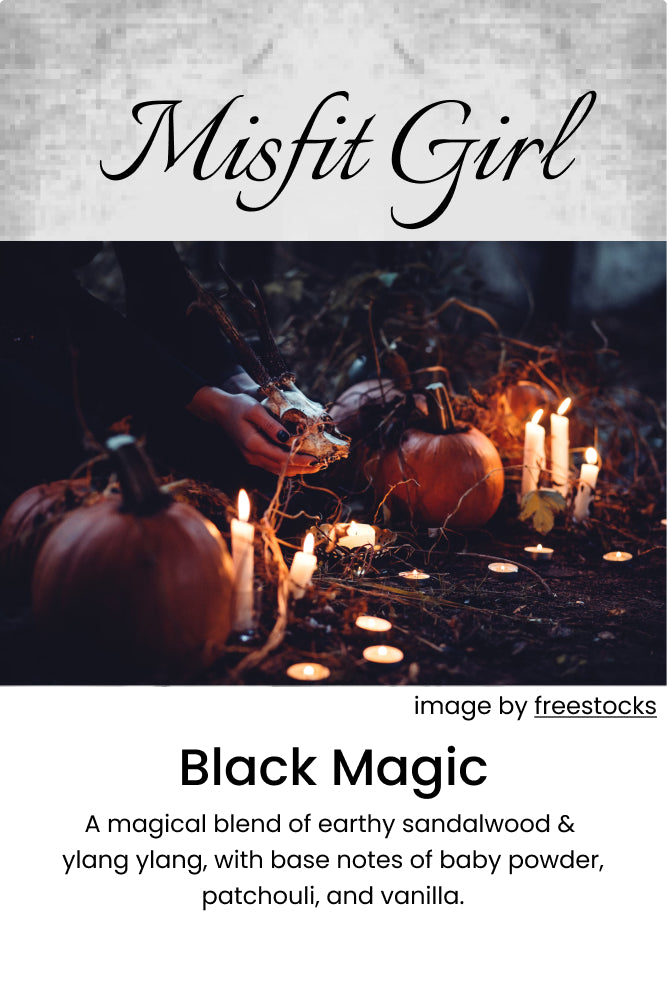 A magical blend of earthy sandalwood & ylang ylang, with base notes of baby powder, patchouli, and vanilla.