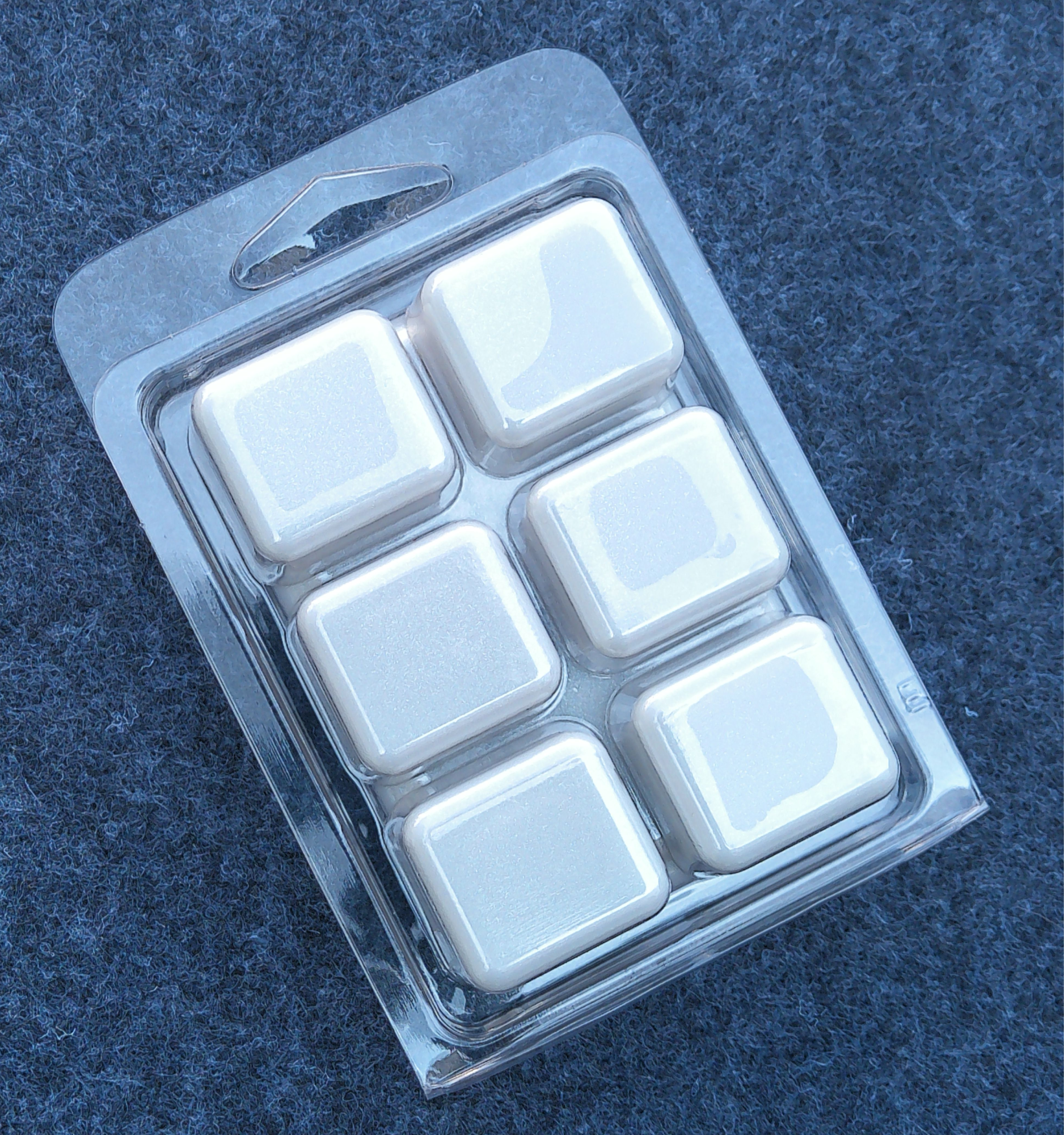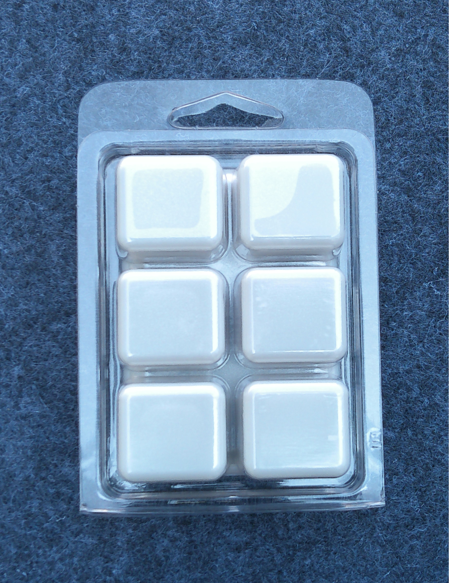 Each soy wax melt comes in a clamshell with 6 cubes, Each clamshell weighs approximately 2.75 ounces depending on the weight of the oil and how its poured. It is biodegradable
