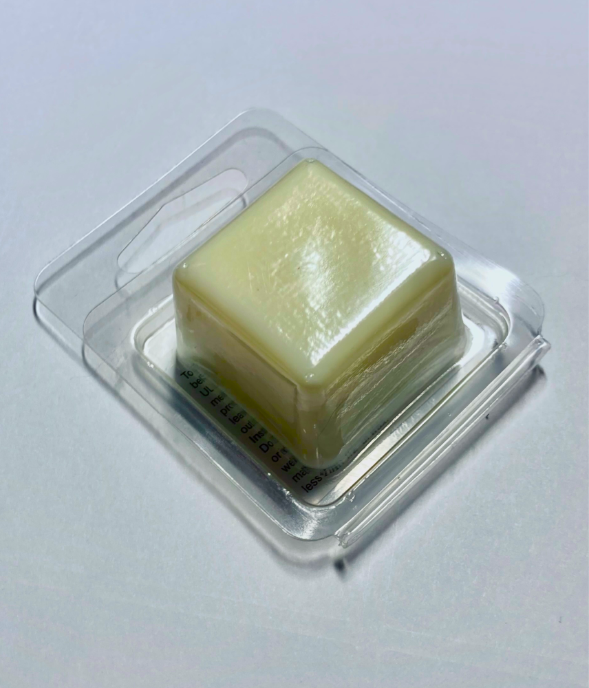 Each soy single shot wax melt comes in a clamshell of 1 cube, Each clamshell weighs approximately 0.875 ounces depending on the weight of the oil and how its poured. It is biodegradable