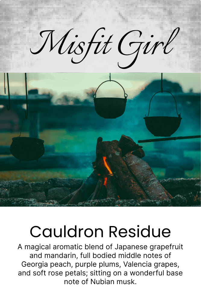 Indulge in a concoction of Japanese grapefruit, mandarin oranges, Georgia peaches, purple plums, Valencia grapes, and soft rose petals, all infused with a hint of Nubian musk. Witches and wizards alike will love the lingering scent of this magical cauldron residue. (No animal parts included.)